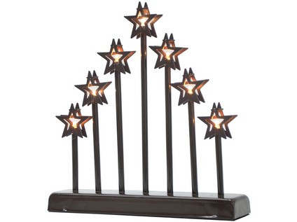 Svícen vánoční el. 7 svíček LED,teplá BÍLÁ,hvězda,kov.,26x6x27cm,2xtuž.AA baterie
